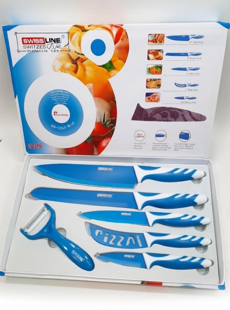 اگر به دنبال ترکیبی از زیبایی و کارایی در آشپزخانه هستید، این ست چاقو تمام نیازهای شما را پوشش میدهد. این مجموعه شامل پرکاربردترین سایزها و مدلهای چاقو است که با طراحی مدرن و رنگبندی جذاب، لذت آشپزی را دوچندان میکند.